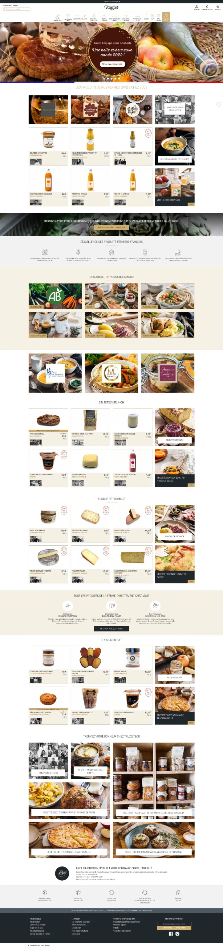 Tauziet & Co a pour objectif de permettre à chacun d’acheter des bons produits de la ferme en mettant en relation des producteurs et des consommateurs. Sur la boutique n’est proposé qu’une sélection de produits frais de qualité et d’épicerie fine venus directement de fermes rigoureusement sélectionnées.
